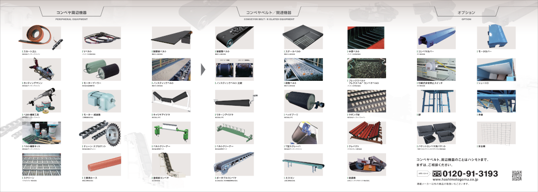 コンベヤベルトからコンベヤ部品・オプション部品・周辺機器・安全対策品まで取り扱っております。